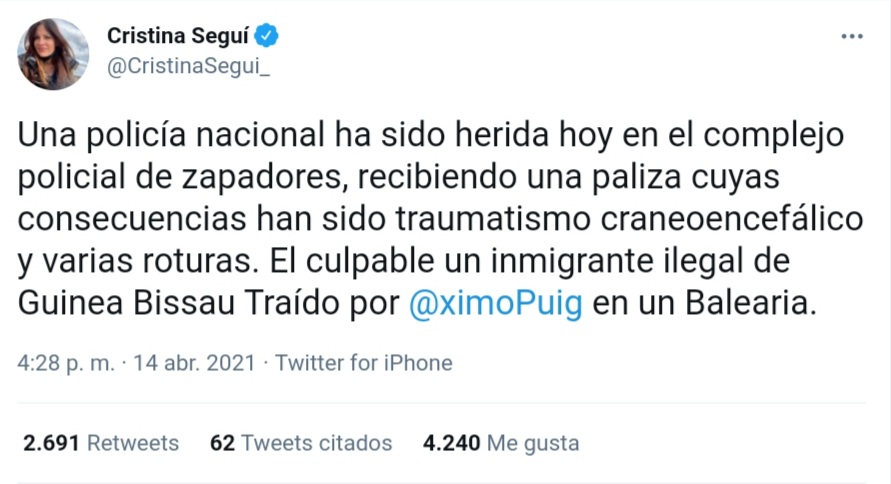 El autor de la agresión, de 35 años y natural de Guinea Bissau, había sido detenido ayer por la noche cuando un coche radiopatrulla del Cuerpo Nacional de Policía intervino en una discusión entre aparcacoches en un parque público adyacente al IVO.